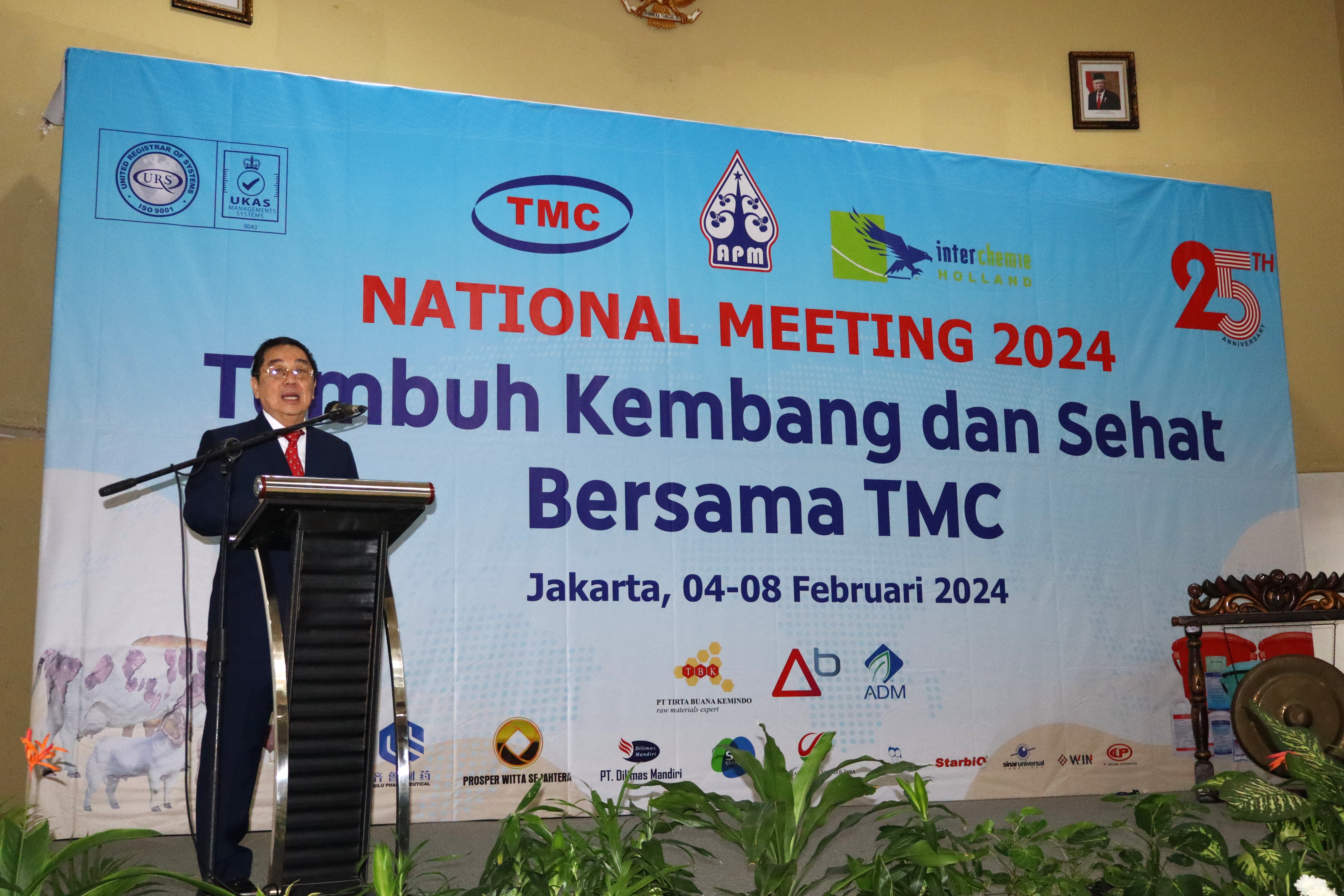 Direktur Utama PT Tekad Mandiri Citra, drh. Gowinda Sibit yang membuka secara resmi National Meeting 2024 mengucapkan selamat datang kepada seluruh peserta yang hadir pada kegiatan tahunan yang sempat vakum akibat Pandemi Covid-19 ini.