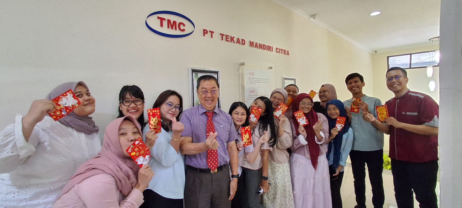 Kebahagiaan dan keceriaan terpancar dari seluruh karyawan yang turut memeriahkan perayaan Tahun Baru Imlek 2026 di PT Tekad Mandiri Citra (TMC) pada Rabu, 18 Februari 2026. Pasalnya, pada kegiatan internal ini, seluruh karyawan mendapatkan Angpau Imlek dari drh. Gowinda Sibit, Direktur Utama PT Tekad Mandiri Citra yang didampingi drh. Julianto, M.Vet, Direktur Manufaktur PT Tekad Mandiri Citra.