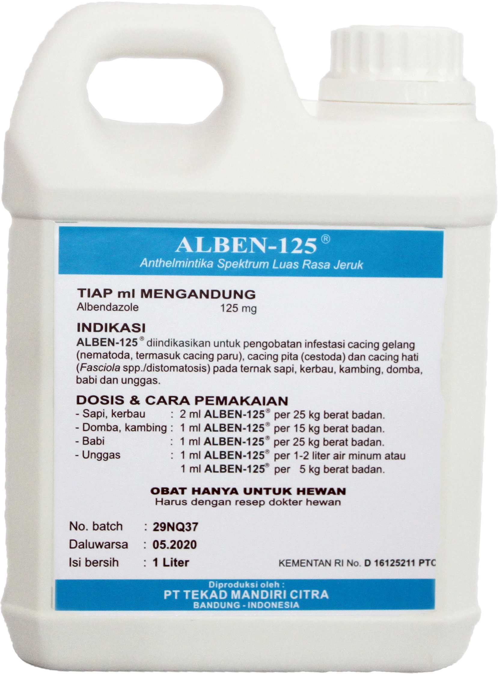 | Domba, kambing | : | 1 ml ALBEN-125® per 15 kg berat badan |