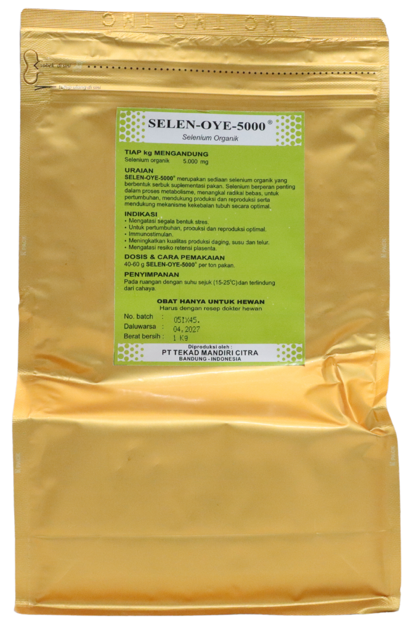 | SELEN-OYE-5000® merupakan sediaan selenium organik konsentrasi tinggi yang berbentuk serbuk sebagai suplementasi pakan. Selenium berperan penting dalam proses metabolisme, menangkal radikal bebas, untuk pertumbuhan, mendukung produksi, dan reproduksi serta mendukung mekanisme kekebalan tubuh secara optimal. |