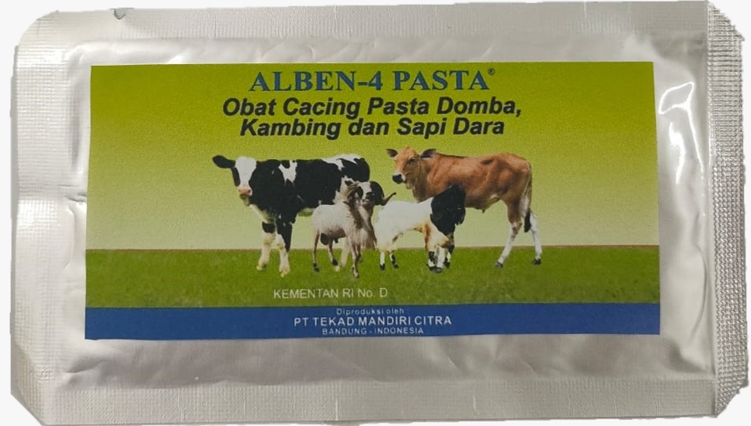 | Kambing, domba | : | 1 sachet (10 g) ALBEN-4 PASTA® per 40 kg berat badan |